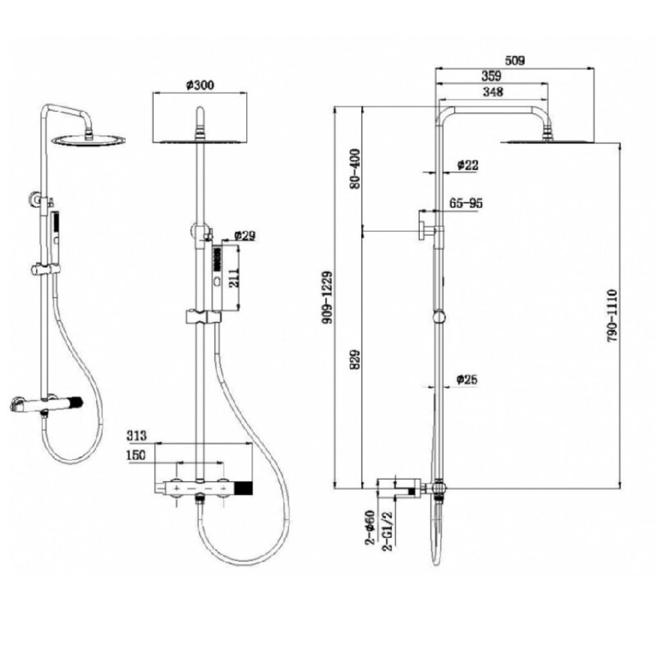 - Шланг для душа: 1,5 м шланг для душа SUS304