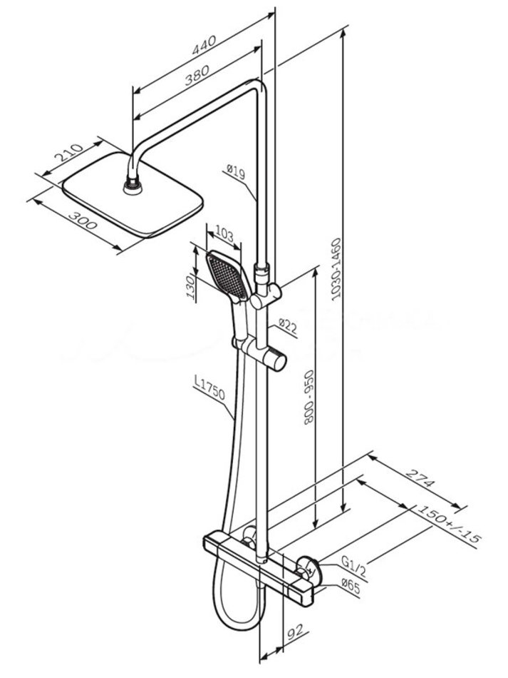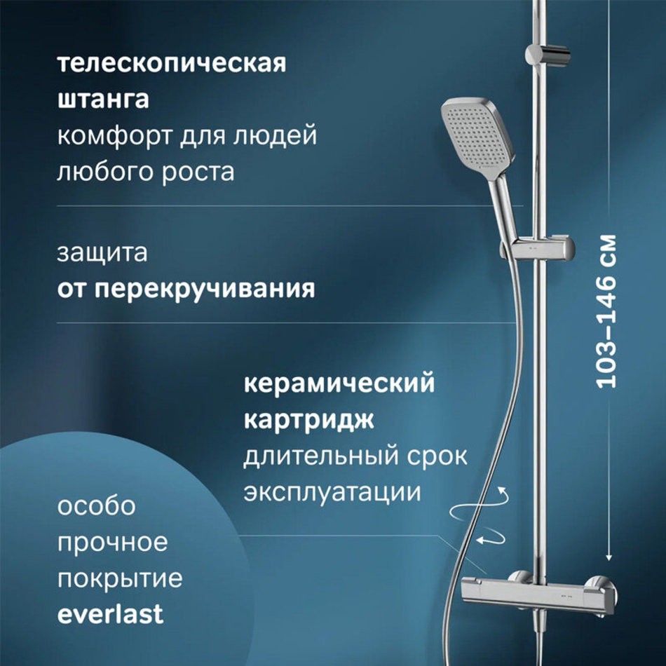 - Длина душевой штанги: 103-146 см