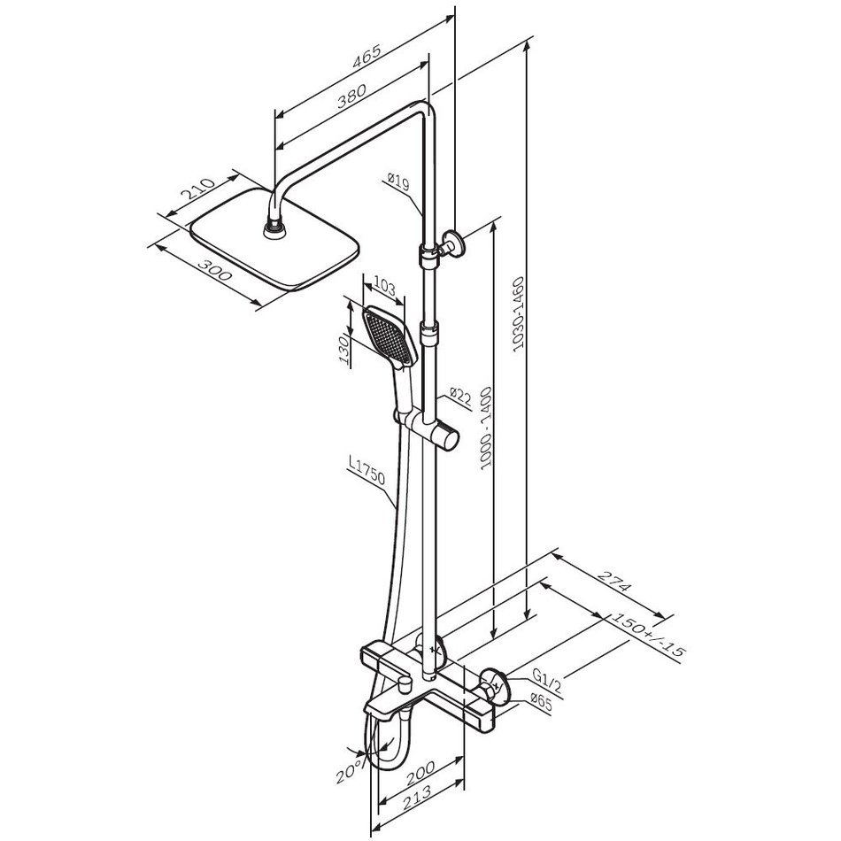 Комплектация: Верхний душ, ручной душ, держатель ручного душа, телескопическая штанга, смеситель д/душа с ТМС, душевой шланг, комплект крепежа, инструкция.