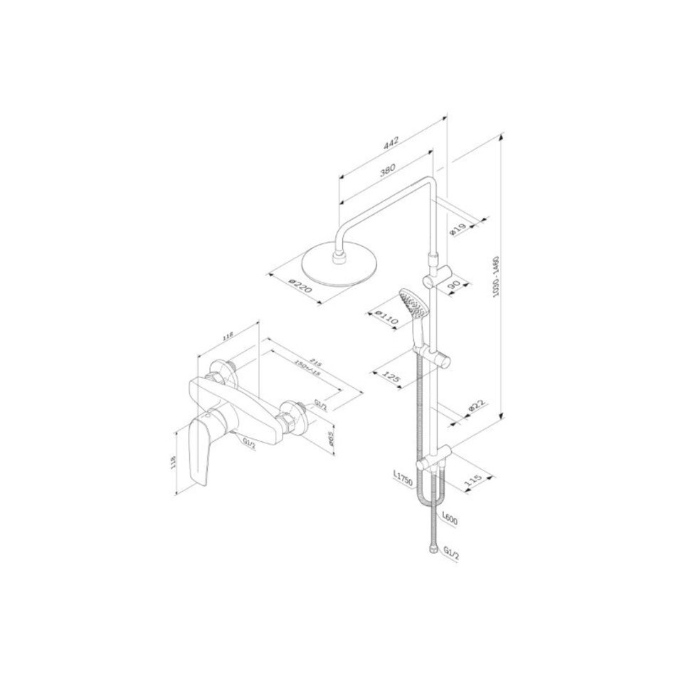 Душевая система Am.Pm Gem, 1 режим, цвет черный матовый, F42890A24