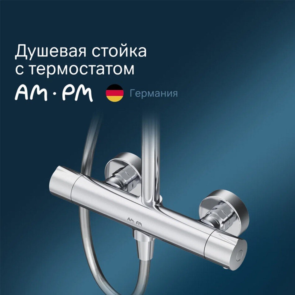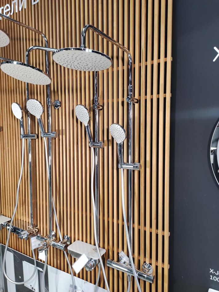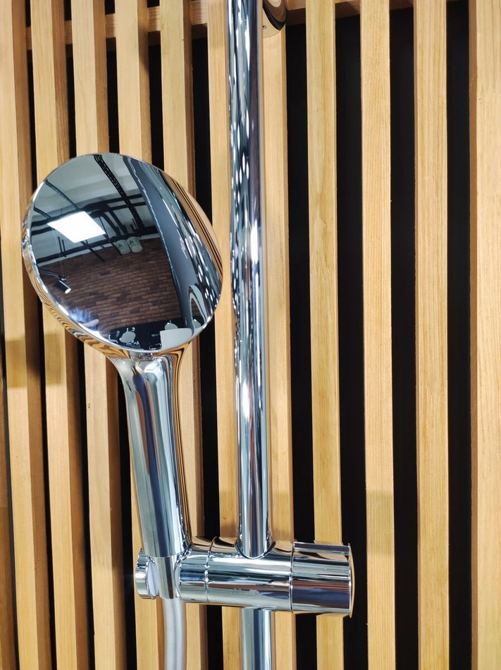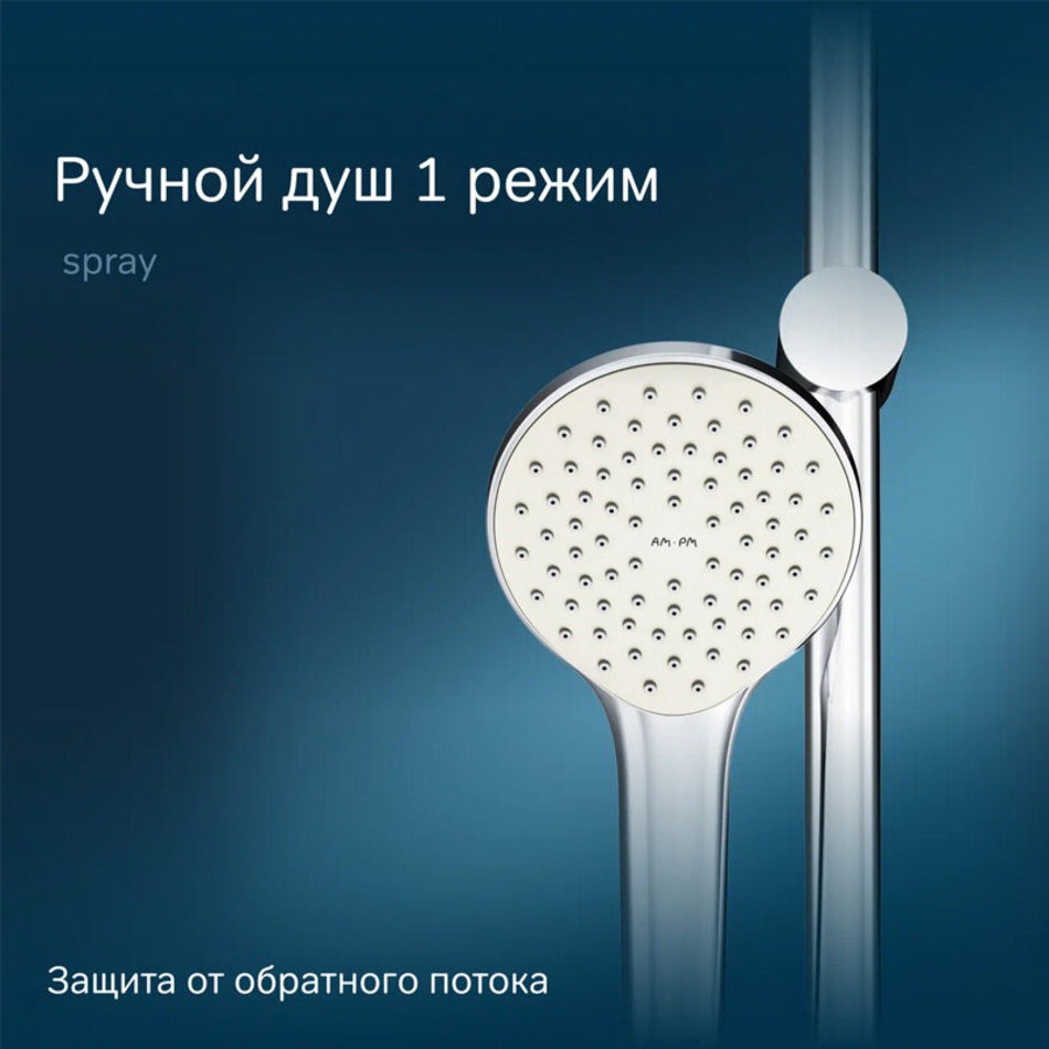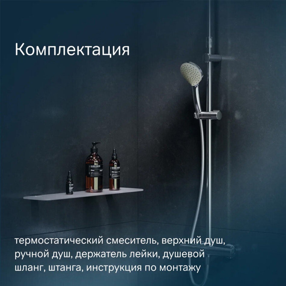 Продуманные детали для удобства использования: штанга регулируется по высоте в диапазоне от 1 030 до 1 460 мм, обеспечивая комфорт для людей любого роста, шаровый шарнир в держателе верхнего душа позволяет регулировать угол его наклона, душевой шланг 1750 мм, верхний душ диаметром 220 мм, ручной душ диаметром 110 мм.