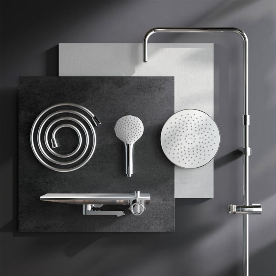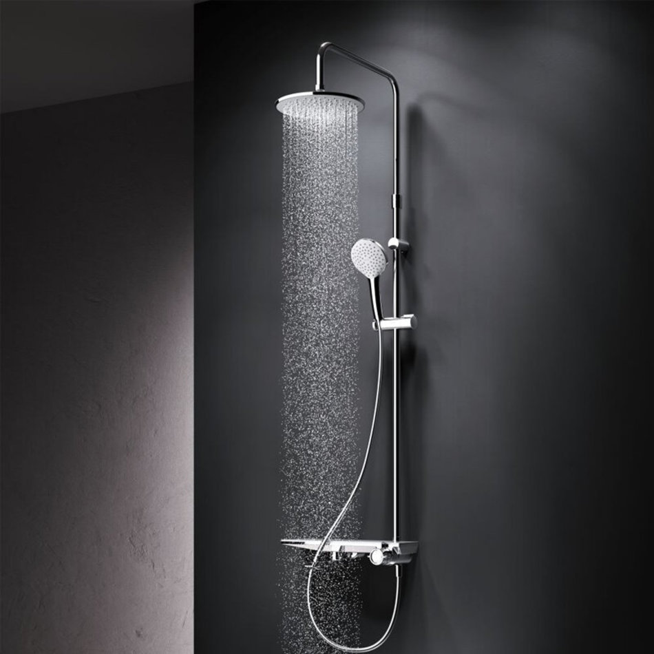 Долгожданное пополнение культовой коллекции Gem — Душевая система с ванно-душевым смесителем-полкой.