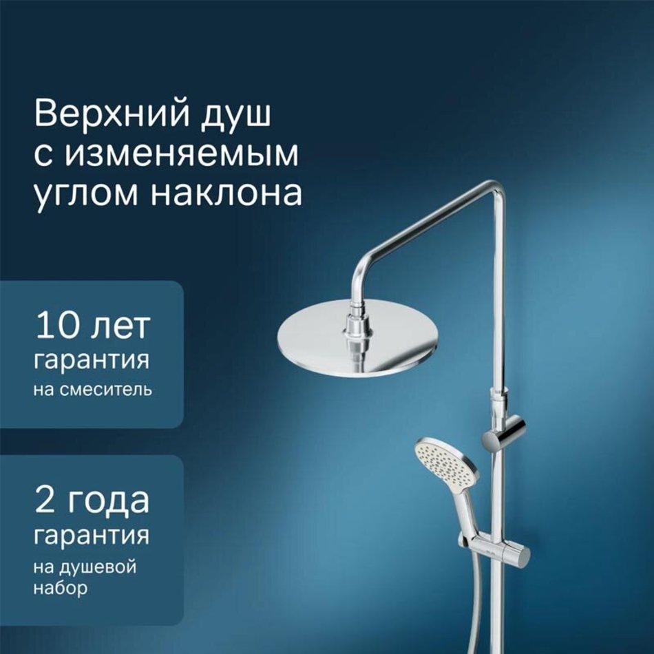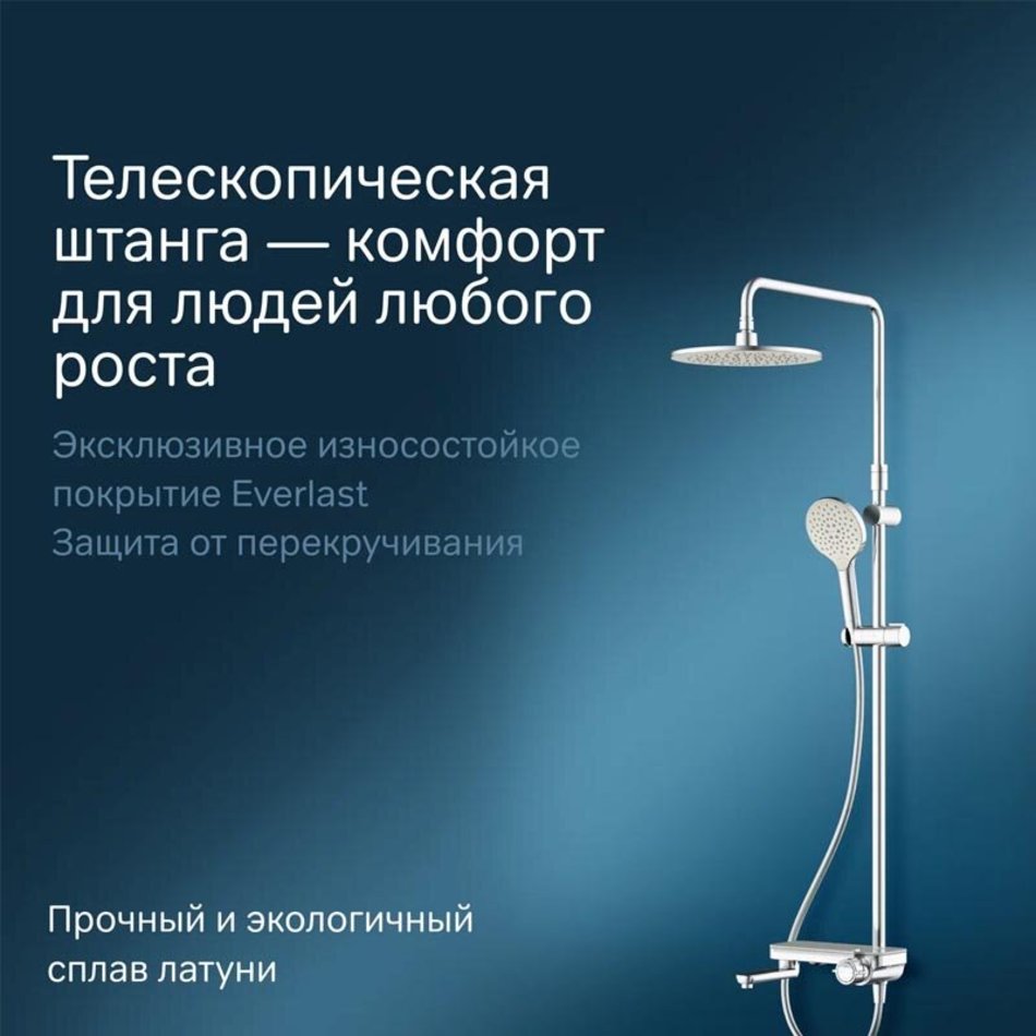 Премиальные размеры и продуманные детали: увеличенный диаметр душевых леек (верхний душ 250 мм и ручной душ 120 мм) позволит ощутить преимущества тропического душа тогда как увеличенная длина шланга 1750 мм обеспечит свободу движений во время принятия душа.
