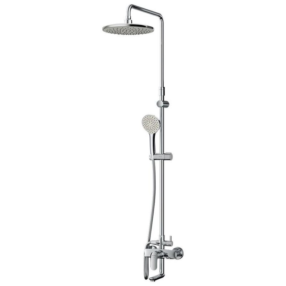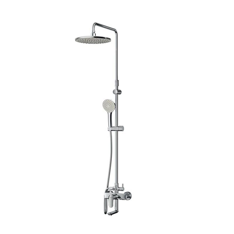 Состав поставки: Смеситель, душевая штанга, верхний установочный крепеж, держатель для ручного душа, верхний душ, ручной душ, душевой шланг, комплект крепежа, эксцентрики, декоративные чаши, инструкция