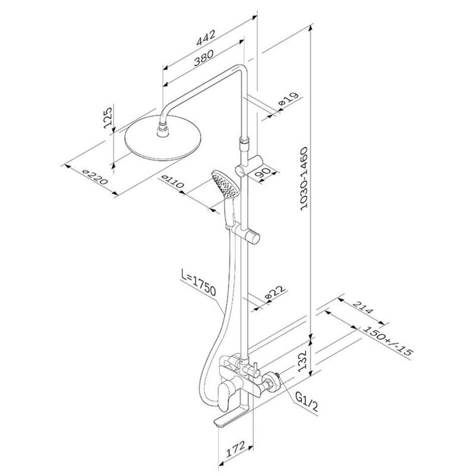 Премиальные размеры и продуманные детали: увеличенный диаметр душевых леек (верхний душ 220 мм и ручной душ 110 мм) позволит ощутить преимущества тропического душа, тогда как увеличенная длина шланга 1750 мм обеспечит свободу движений во время принятия душа. Телескопическая поворотная штанга регулируется по высоте в диапазоне от 1030 до 1460 мм, обеспечивая комфорт для людей любого роста, а шаровой шарнир в держателе верхнего душа позволяет регулировать угол его наклона.