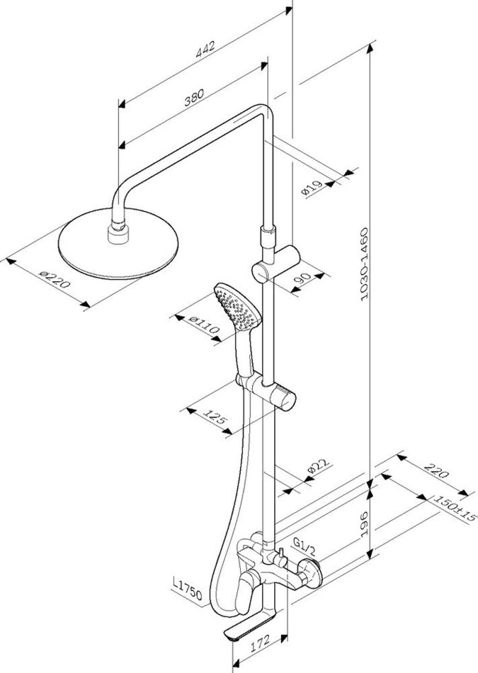 - Телескопическая поворотная штанга регулируется по высоте в диапазоне от 1030 до 1460 мм, обеспечивая комфорт для людей любого роста.