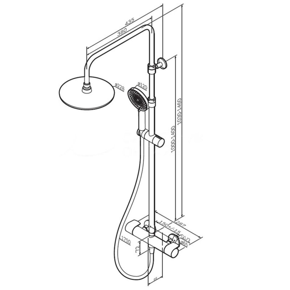 Комплектация: Верхний душ, ручной душ, держатель ручного душа, телескопическая штанга, смеситель д/душа с ТМС, душевой шланг, комплект крепежа, инструкция.