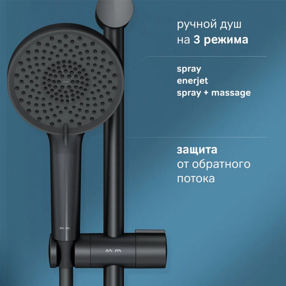 Душевая система Am.Pm X-Joy F0785A422, термостатическая, черный матовый