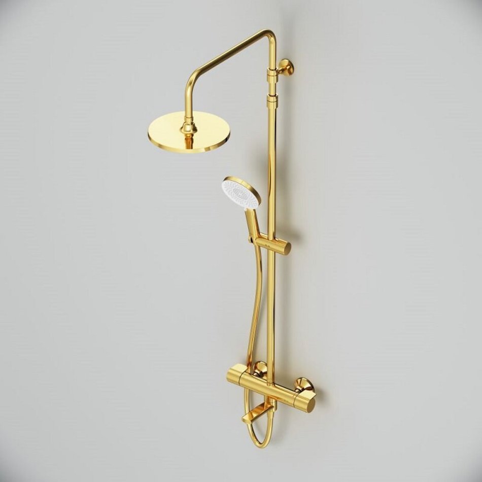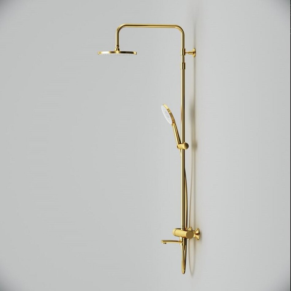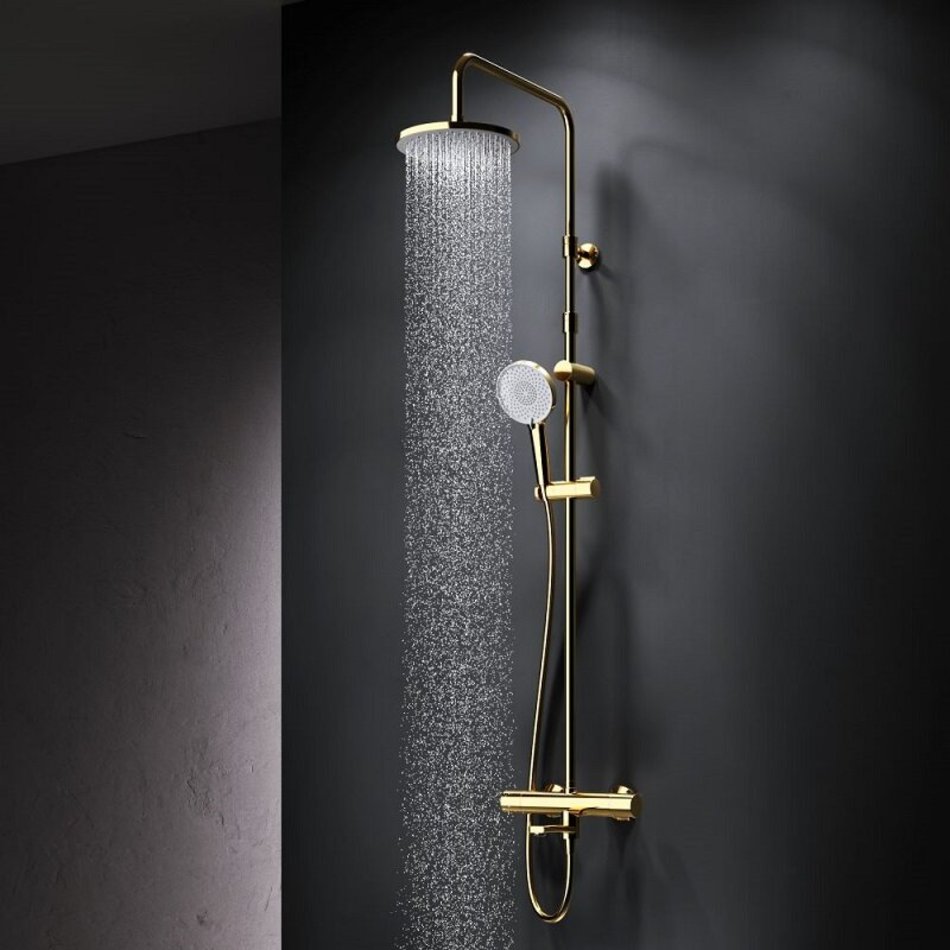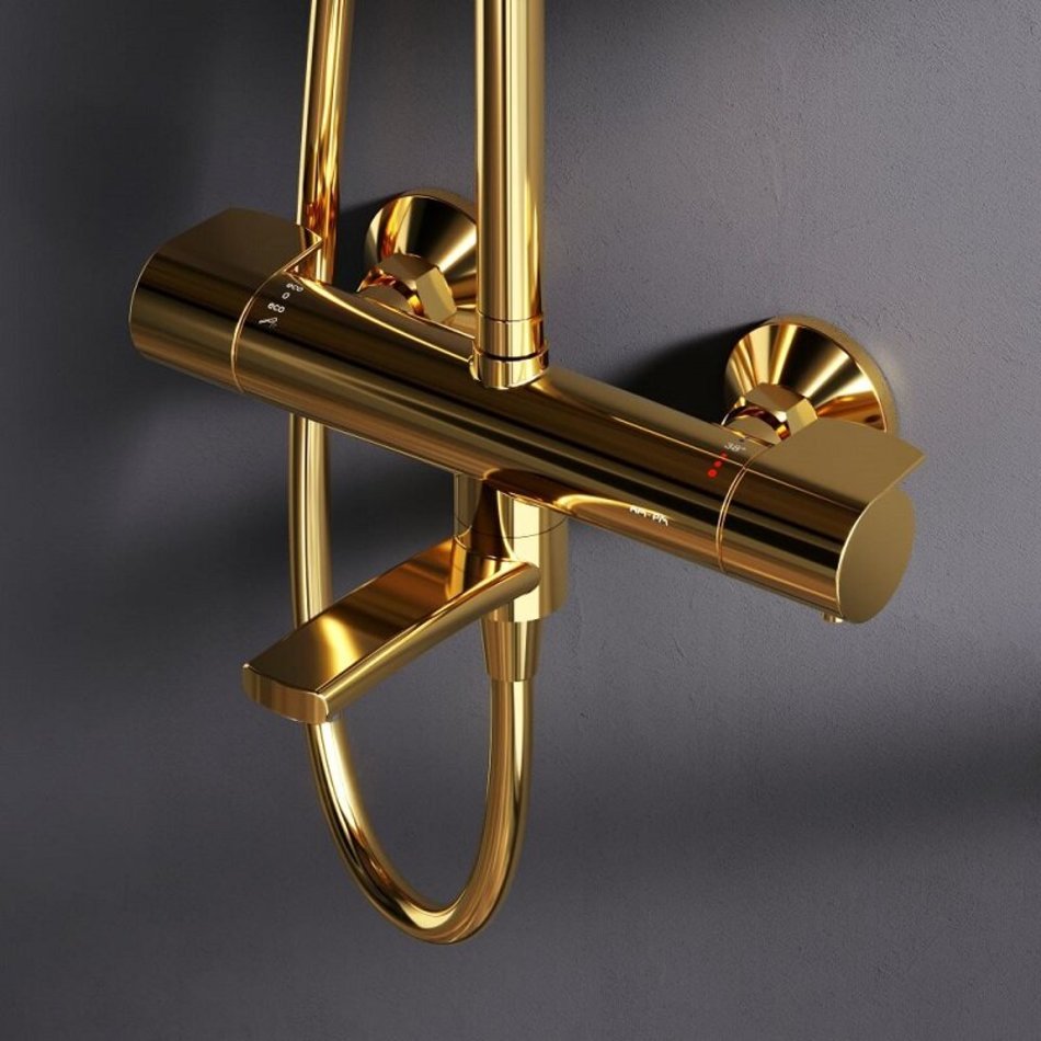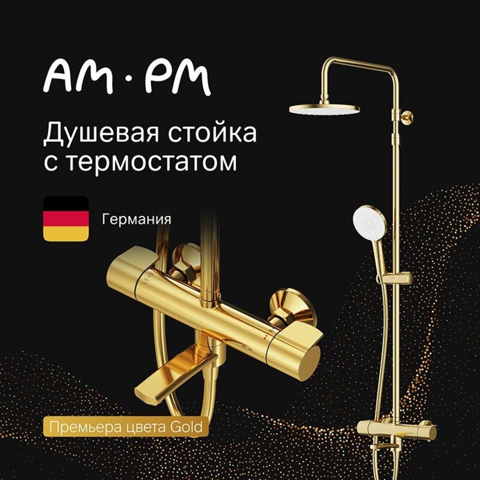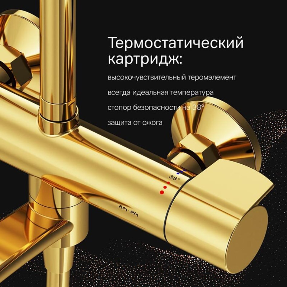 Душевая система Am.Pm X-Joy F0785A599, термостатическая, с изливом, цвет золотой