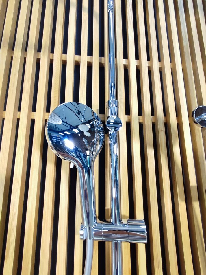 Комплектация: Верхний душ, ручной душ, держатель ручного душа, телескопическая штанга, смеситель д/душа и ванны, душевой шланг, комплект крепежа, инструкция.