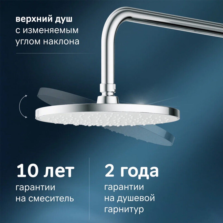 - Гарантия: смеситель 10 лет; душевая система 2 года
