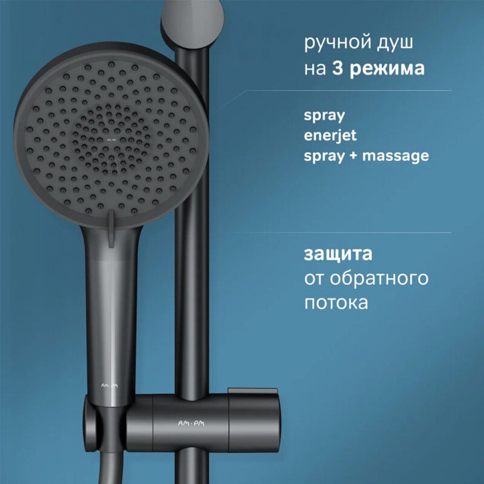 Душевая система Am.Pm X-Joy F0785A722, с изливом, черный матовый