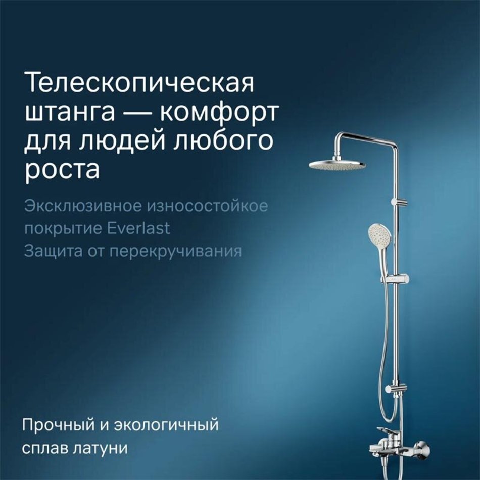 Коллекция X-Joy была создана для того, чтобы задавать новые стандарты и радовать вас каждый день! Ультрамодный дизайн ручки придает смесителю дополнительную динамику и дарит непревзойденную легкость управления.Продуманные детали душевой системы для удобства использования: штанга регулируется по высоте в диапазоне от 1 030 до 1 460 мм, обеспечивая комфорт для людей любого роста, шаровой шарнир в держателе верхнего душа позволяет регулировать угол его наклона, душевой шланг 1750 мм, верхний душ диаметром 220 мм, ручной душ диаметром 110 мм.