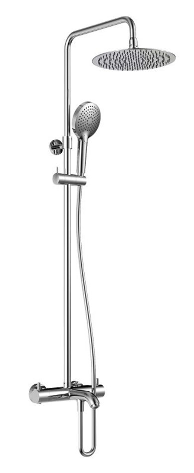 Состоит из: верхний душ, ручной душ, термостатический смеситель для душа, излив, штанга для душа, держатель для душа.