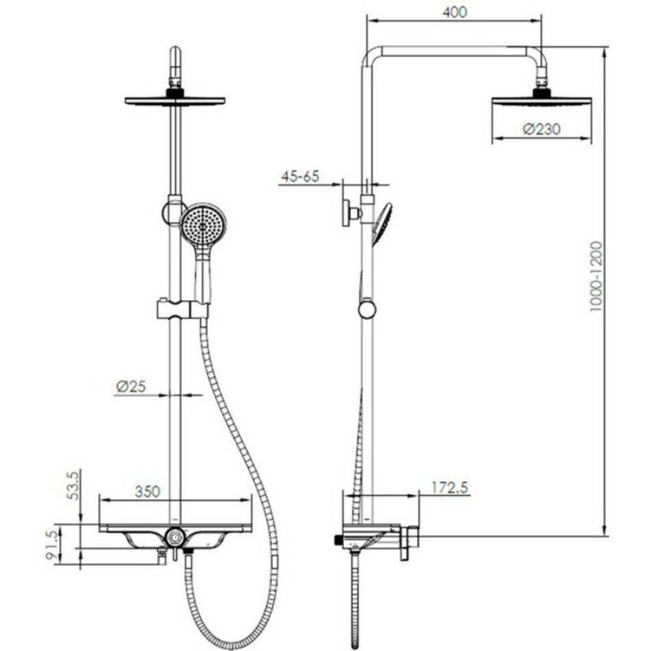 - состоит из: верхний душ, ручной душ, смеситель для душа, штанга для душа, держатель для душа