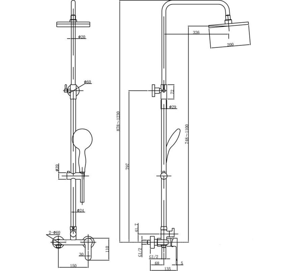 Душевая система Aquanet Passion S2 212274, с квадратным верхним душем 20 см, хром