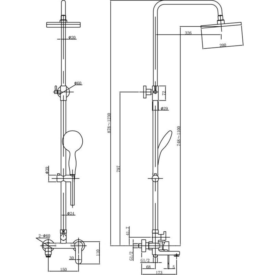 Душевая система Aquanet Passion S3 212275, с квадратным верхним душем 20 см, хром
