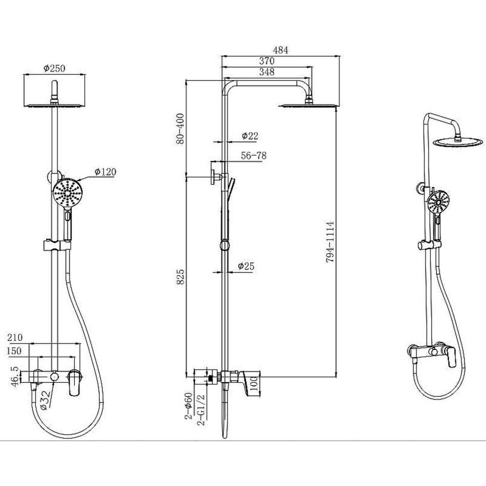 - регулируемая душевая штанга из нержавеющей стали, выдвигающаяся до 1114 мм в высоту
