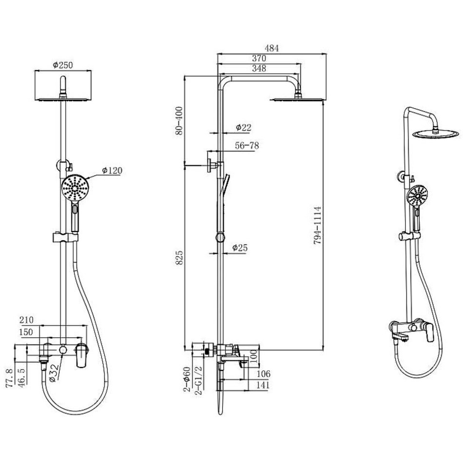 - регулируемая душевая штанга из нержавеющей стали, выдвигающаяся до 1114 мм в высоту