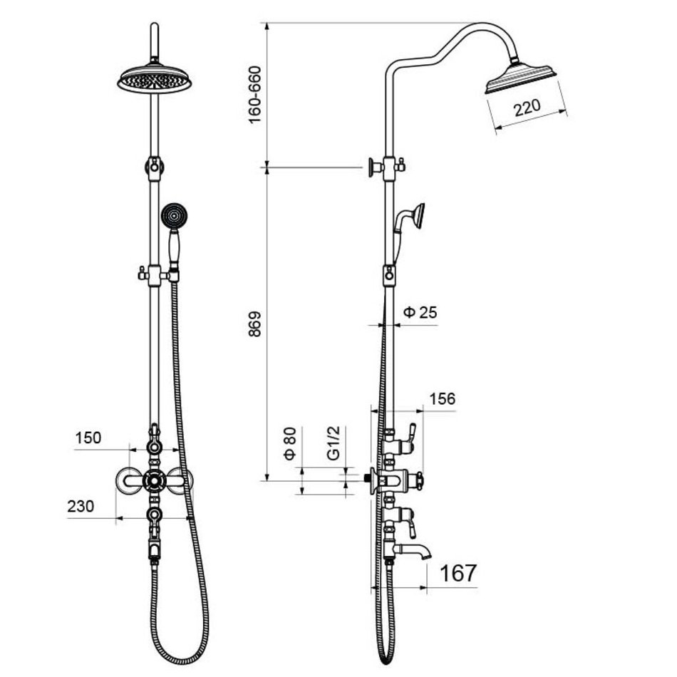 Душевая система Aquatek Классик AQ2543MB для душа, термостатическая, цвет черный матовый