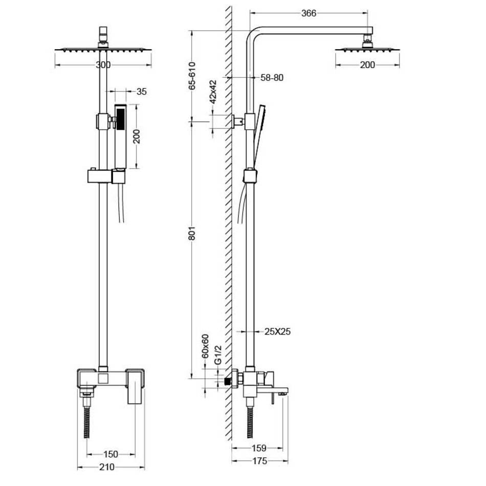 - Душевая штанга из нержавейки, диаметр 25 мм