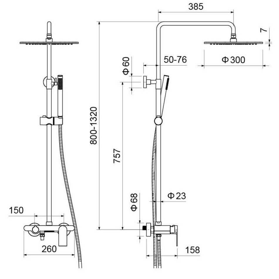 - Душевая штанга из нержавейки, диаметр 23 мм
