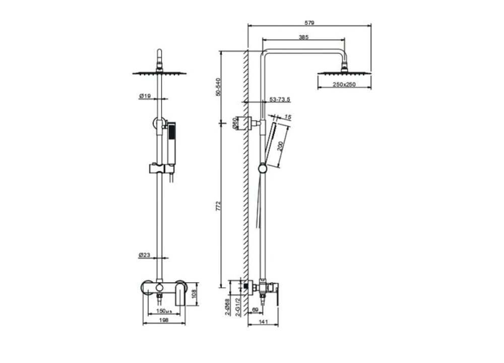 - Верхний душ из нержавеющей стали, 25 х 25 см, с изменяемым углом
