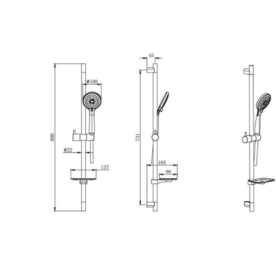 - Шарнирное соединение: регулируемый угол наклона верхнего душа.