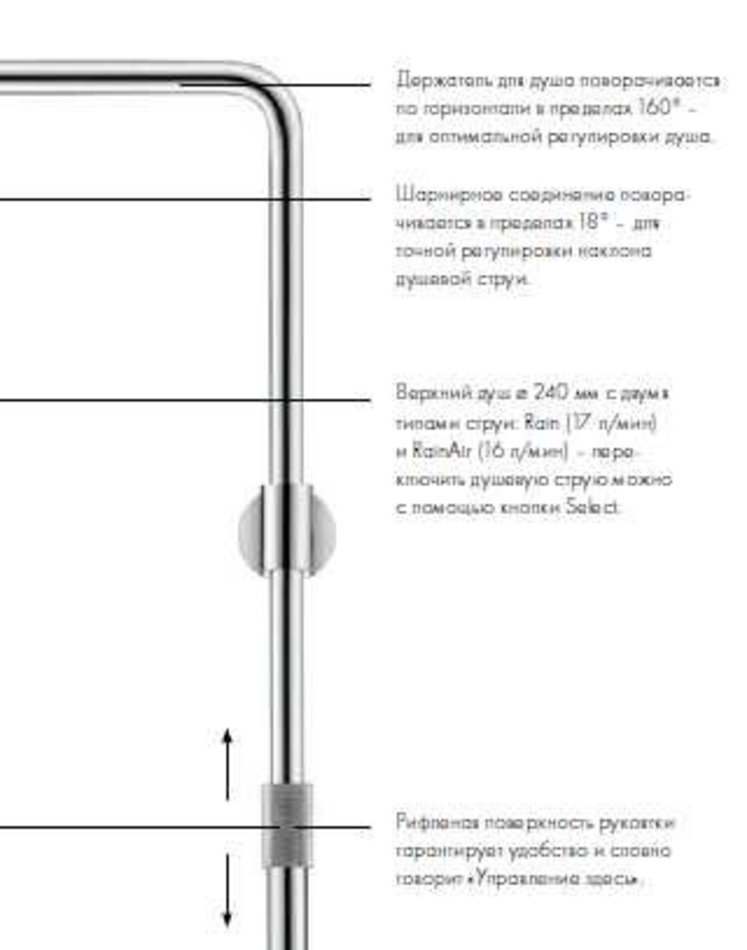 - верхний душ регулируется под углом