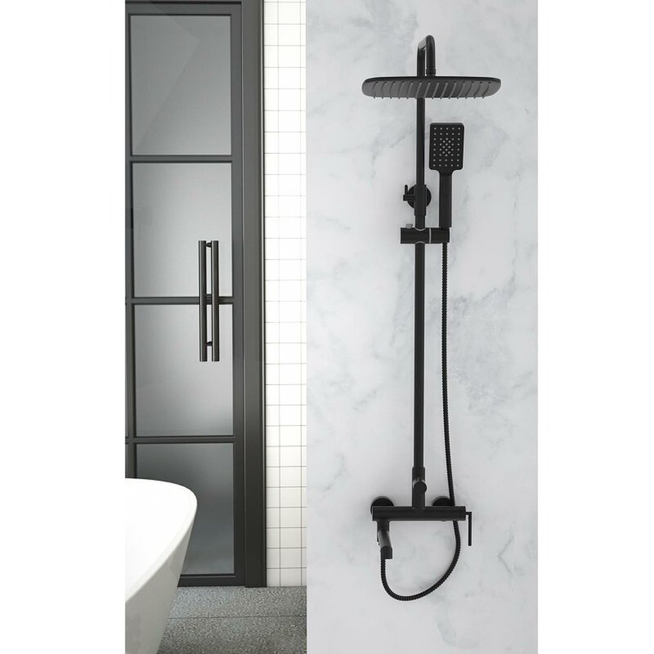 В комплекте поставки: смеситель, душевая штанга, верхний душ, ручной душ, душевой шланг, эксцентрики,крепления.
