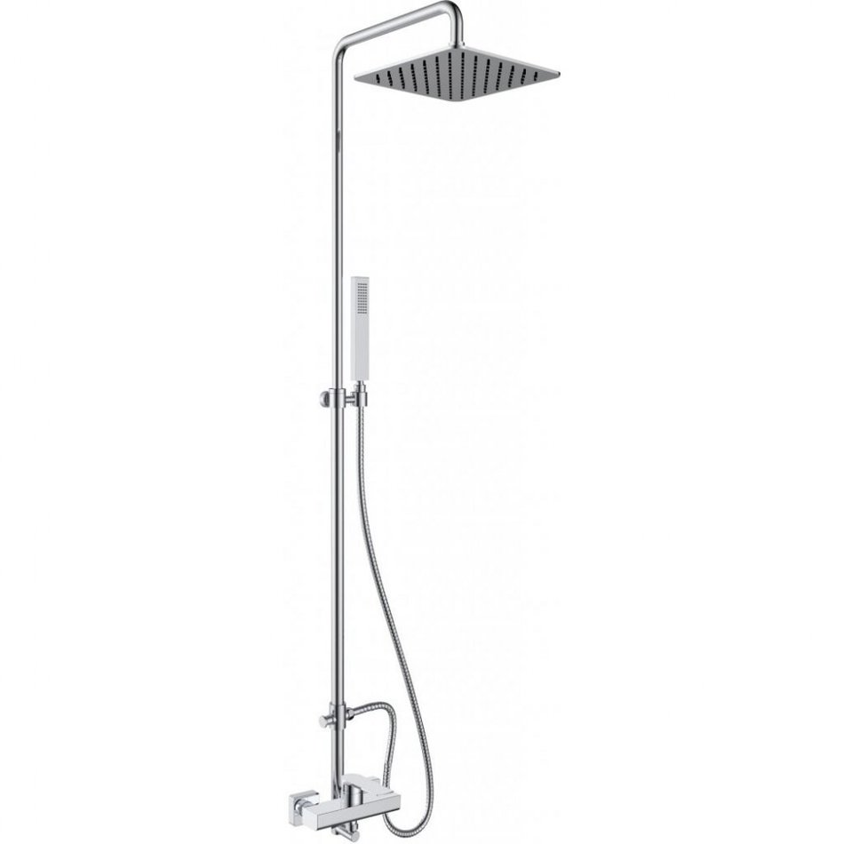 В комплекте: смеситель, ручной душ, верхний душ, гибкий шланг