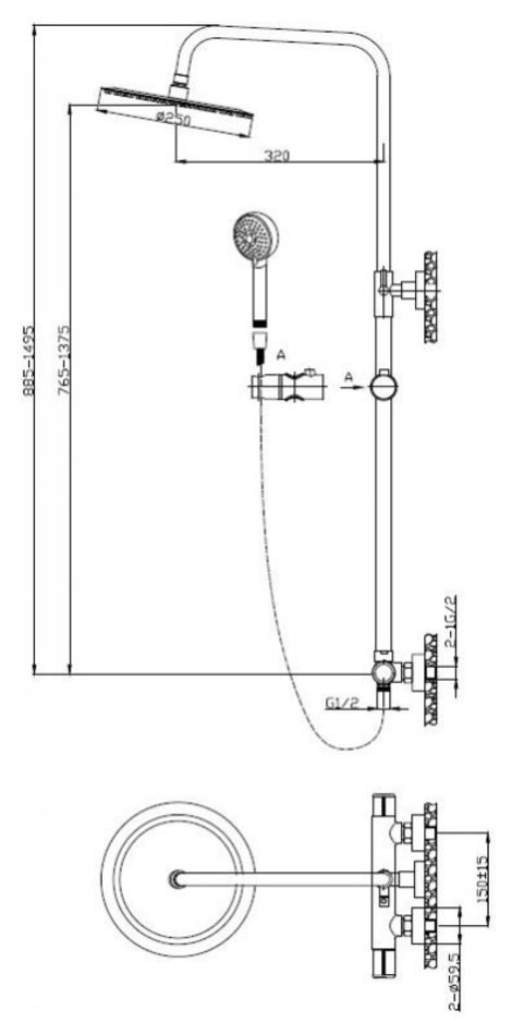 - Оснащение: эксцентрики, дивертор, душевой шланг, душевая лейка, верхний душ, смеситель