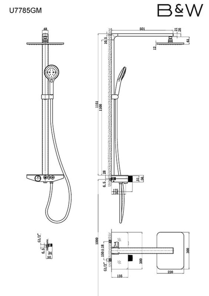 Душевая система Black&White Universe U7785GM, Gun Metal, 7785GM