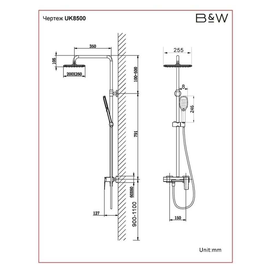 Душевая система Black&White Universe UK8500C, с изливом, цвет хром