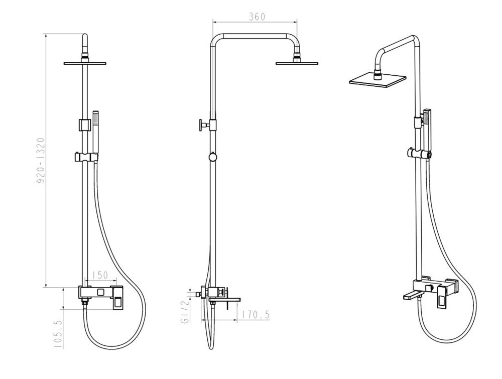 Душевая система Boheme Q, верхний душ, ручной душ, с изливом, черный, красный, 148-BR.2