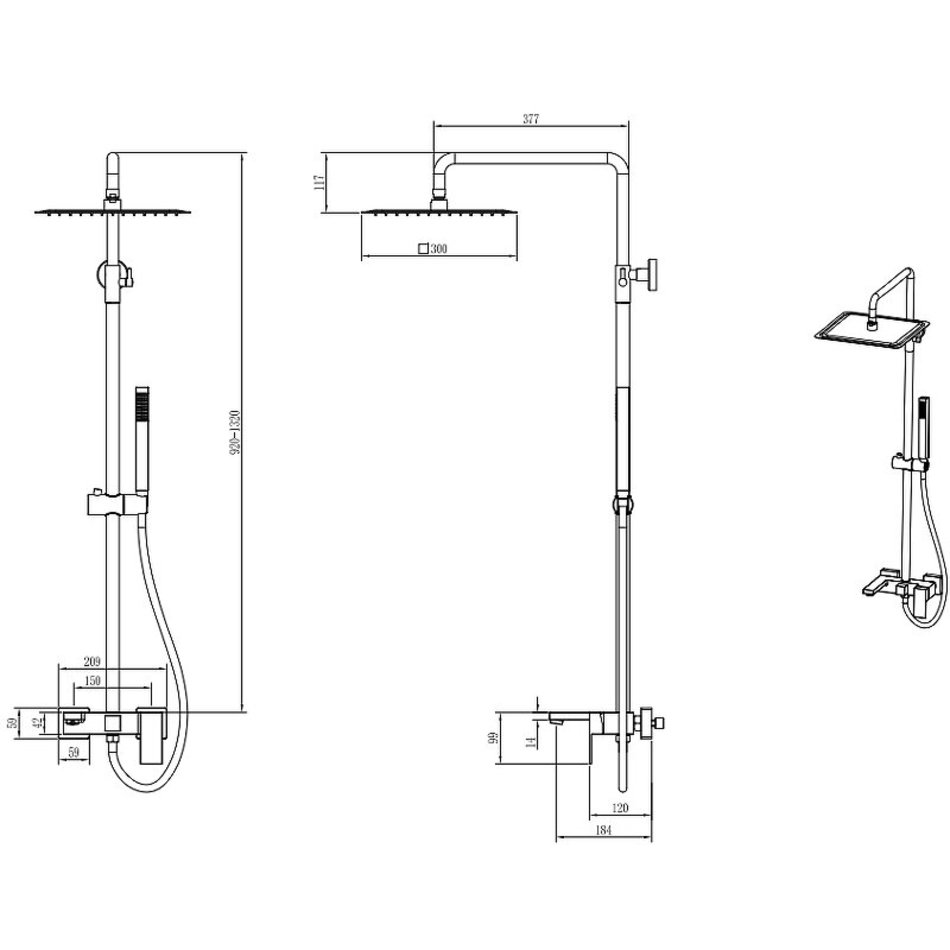 - Размер верхнего душа 300х300 мм.