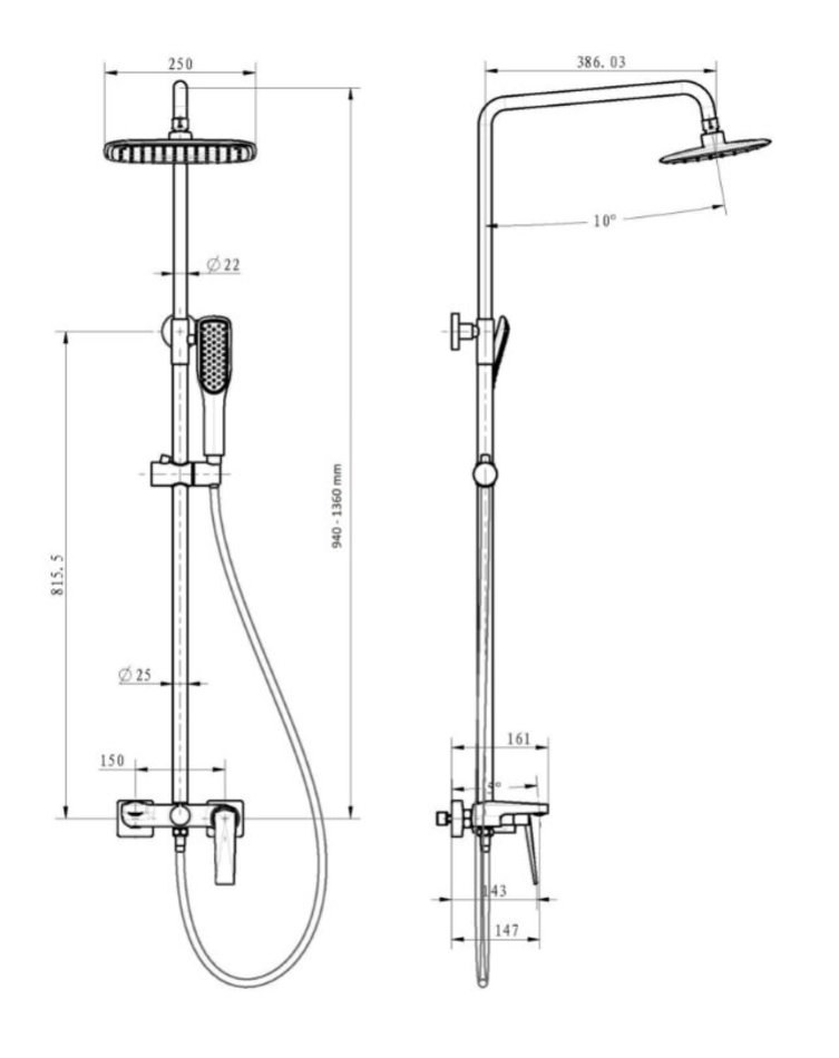 Душевая система Boheme Venturo 378, верхний душ, ручной душ, хром