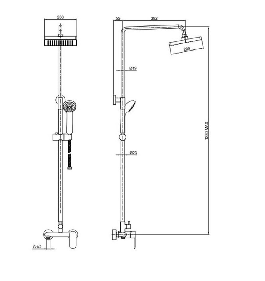 Душевая стойка для ванны Bravat Opal с большим квадратным верхним душем и смесителем без излива. Серия известна не только своим качеством, но и высоким уровнем эргономики.