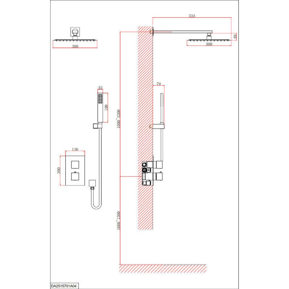 - Размер верхнего душа (ШxД): 300 x 300 мм.