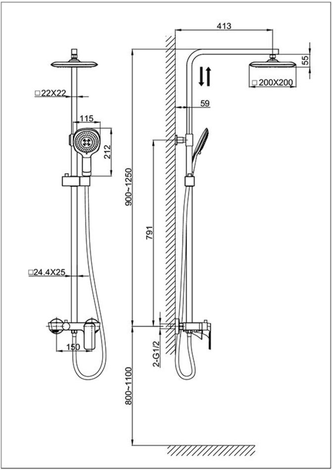 Душевая система D&K Berlin Technische DA1433715A02 черный