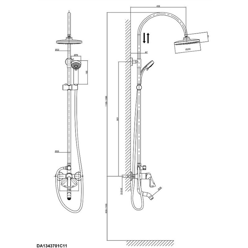Душевая система D&K Rhein.Ambrosius, со смесителем для раковины, с изливом, цвет хром, DA1340006SET