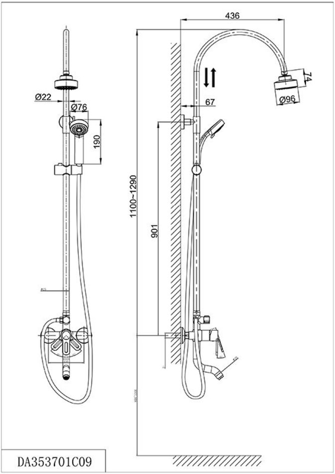 Душевая система D&K Rhein Paulinus DA1353701C11, с изливом, хром