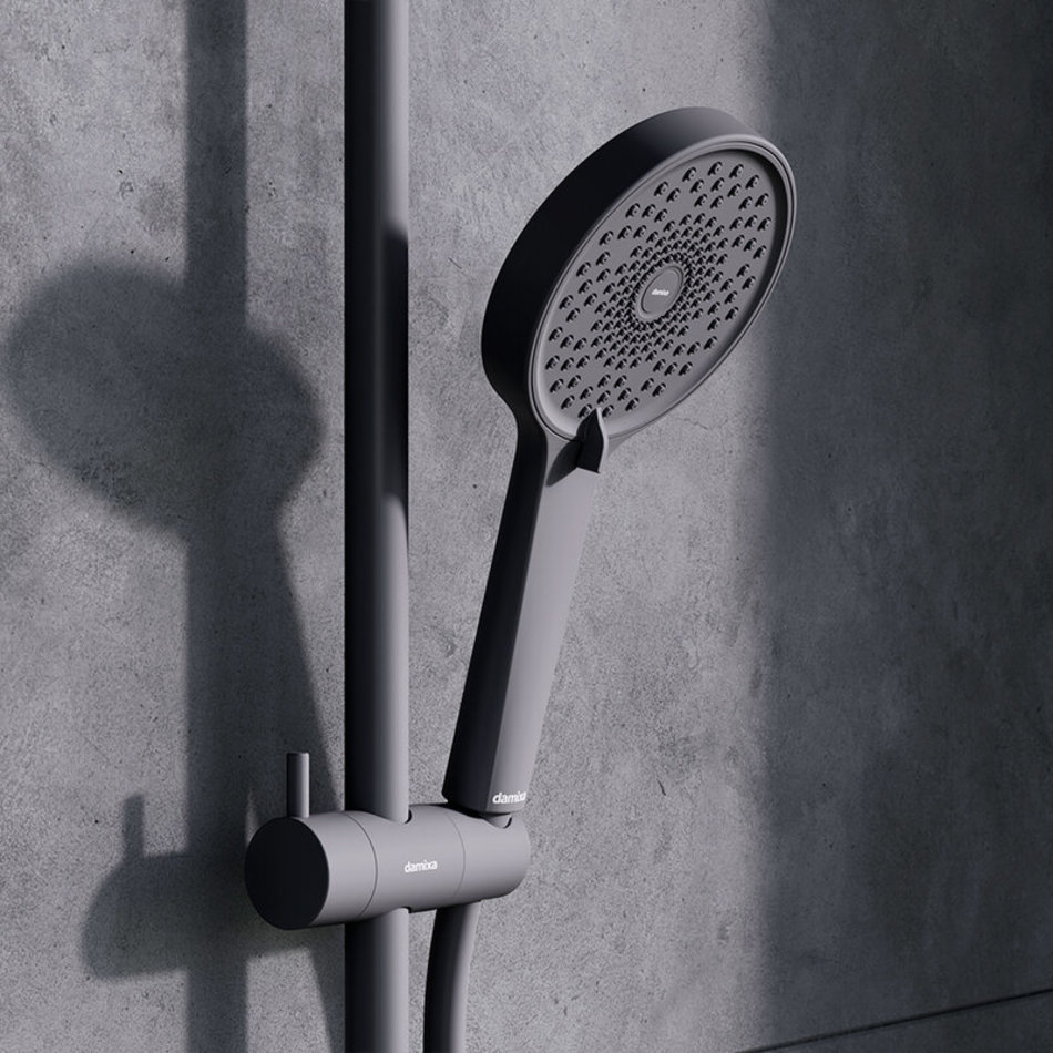 Инновационное PVD-покрытие гарантирует чрезвычайную прочность душевой системы. Матово-черная поверхность не выцветает с годами и устойчива к механическим повреждениям, загрязнениям и отпечаткам пальцев.