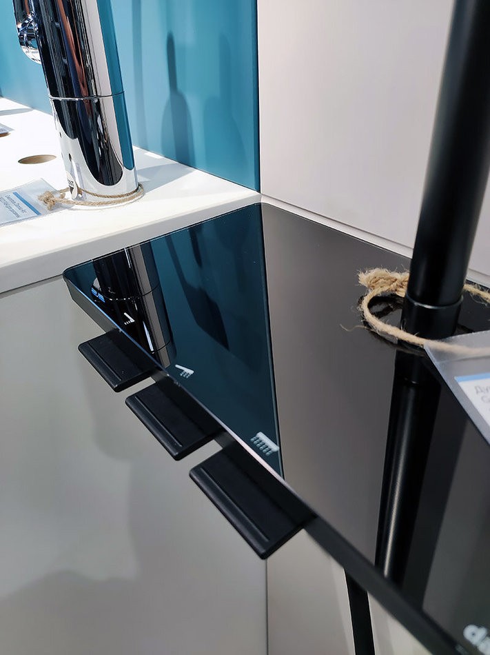 - Максимальная безопасность: термостатический картридж 35 мм обеспечивает точную настройку температуры и напора воды. Благодаря телескопической штанге с диапазоном регулировки в 400 мм водные процедуры будут одинаково комфортны абсолютно для всех членов семьи. Непревзойдённый комфорт и удобство: благодаря стильной полочке из ударопрочного закаленного стекла, вы можете хранить все необходимые вещи под рукой.