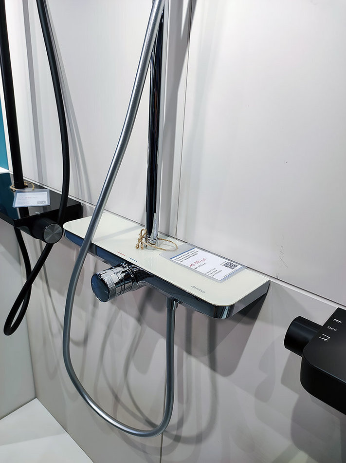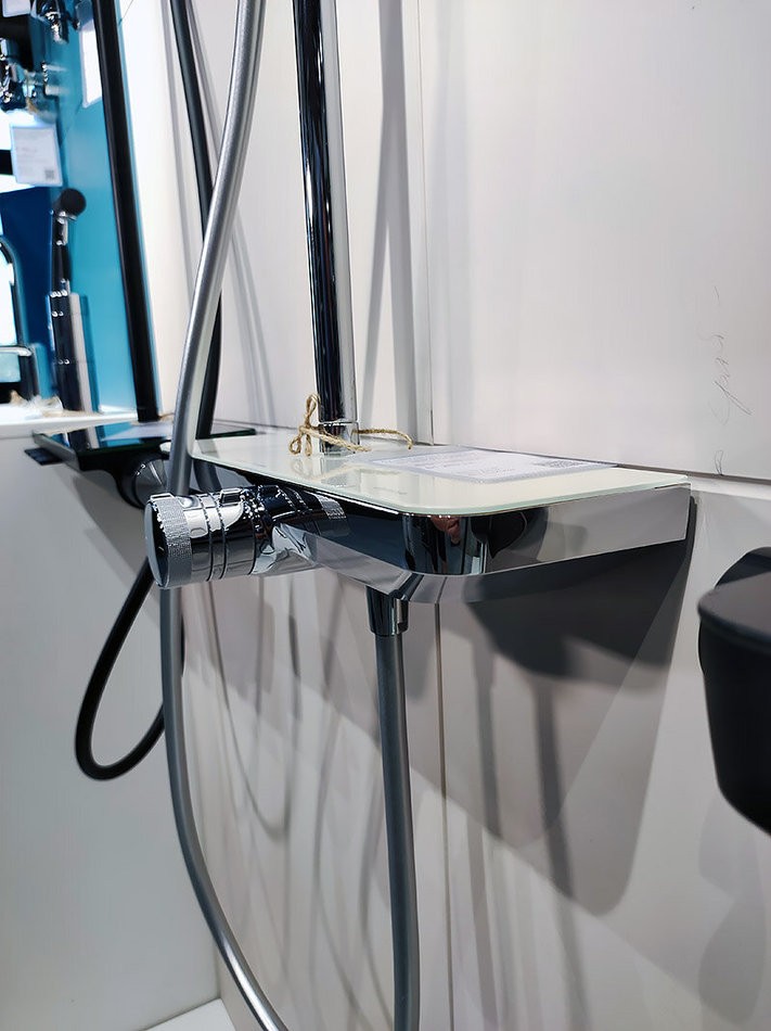 - Продуманные детали: корпус смесителя выполнен в виде удобной полочки из закаленного стекла, на которой можно разместить необходимые под рукой вещи. Невидимый излив совмещает в себе эстетику и удобство.