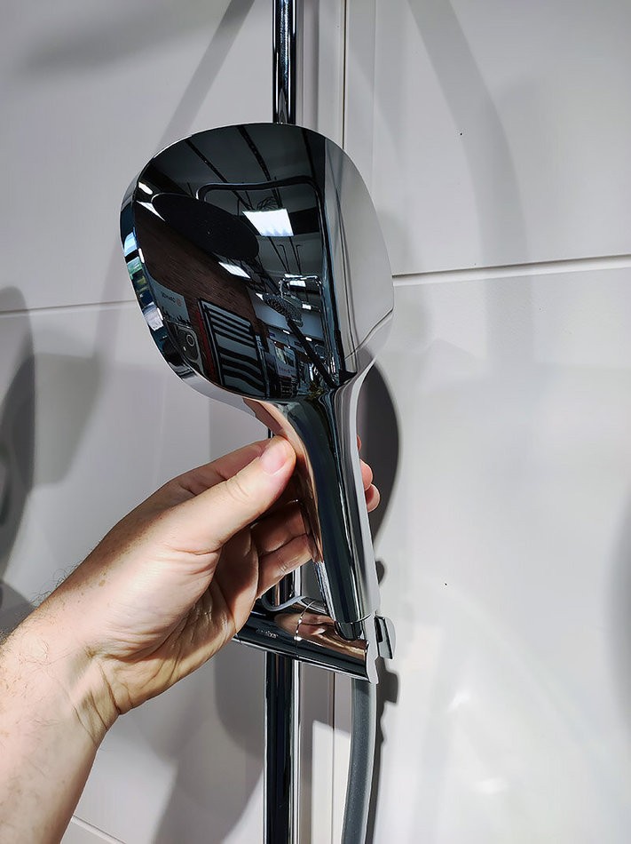 - Инновационное покрытие High Gloss надежно защищает хромовую поверхность душевой системы от мелких повреждений и сохраняет ювелирный блеск на долгие годы..