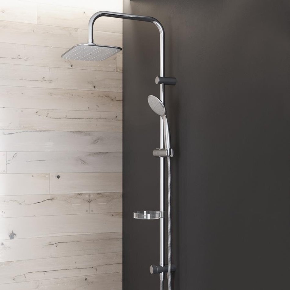 - Душевая система со смесителем, прямоугольным верхним душем и ручным душем