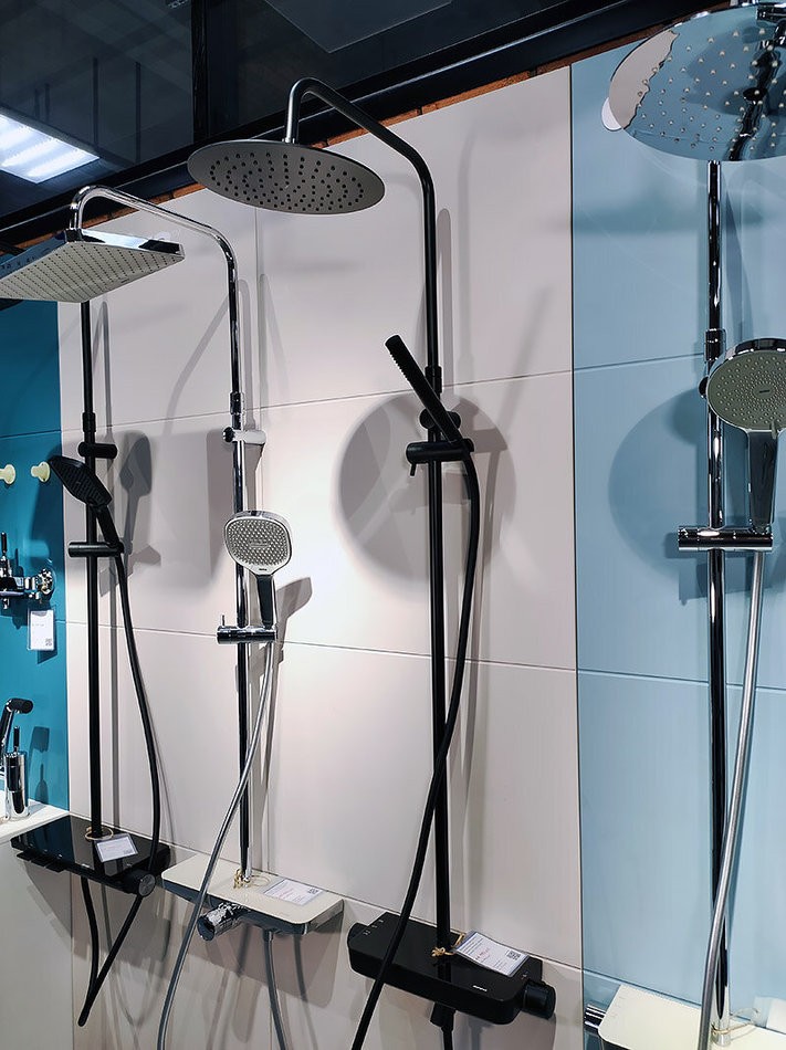 - Непревзойдённый комфорт и удобство: смеситель выполнен в виде компактной полочки из закаленного стекла, где вы можете хранить все необходимые вещи. Увеличенный диаметр верхнего душа с возможностью регулировки угла наклона и ручная лейка в трендовой форме стика подарят вам полный спектр ощущений - помогут взбодриться утром и расслабится вечером. Переключайте потоки воды между ручной и тропической лейками плавным поворотом левой ручки смесителя, а между ручной лейкой и изливом - поворотом излива.