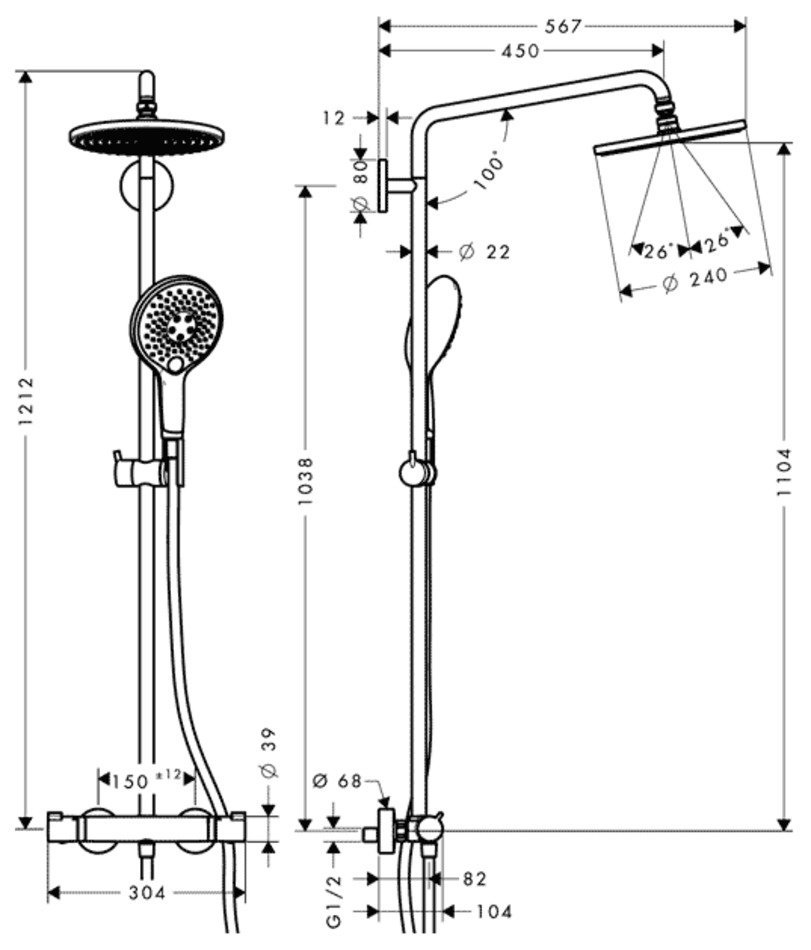 - состоит из: верхний душ, ручной душ, термостат для душа, штанга для душа, держатель для душа, душевая штанга