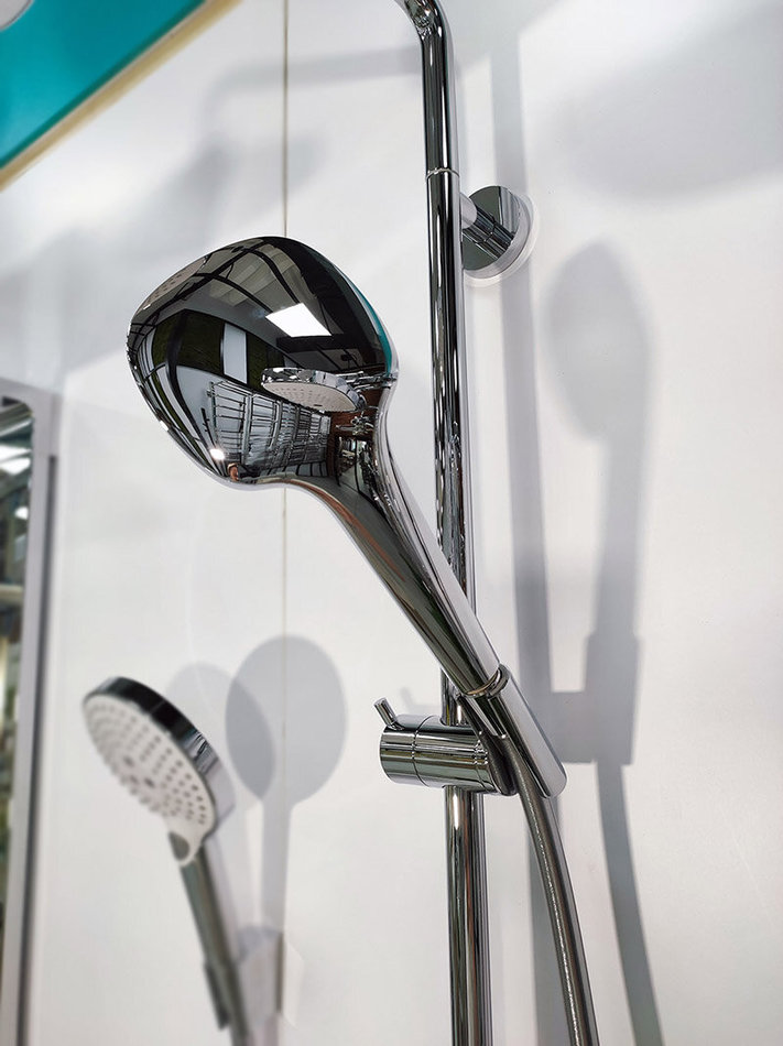 - шарнирное соединение: регулируемый угол верхнего душа